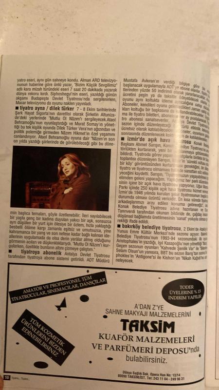 TİYATRO AYLIK HABER TANITIM DERGİSİ - EKİM 1993 SAYI: 30 MUSTAFA DEMİRKANLI - NALAN ÖZÜBEK - RUTKAY AZİZ - ENİS BAKIŞKAN - ORHAN ALKAYA - GENCO ERKAL - GÖKHAN AKÇURA - NURAY AVŞAR - YILMAZ ÖĞÜT - EMİN ŞENOL - FİKRET İLKİZ - YILMAZ ONAY - DİKMEN GÜRÜN UÇARER - ASLI ÖNGÖREN - MURAT KARASU - TEVFİK YALÇIN - MEHMET ATAK - BELGİN SUNAL - SEVİN OKYAY - YILDIZ TUNBUL - OBEN GÜNEY - SAVAŞ ÇEKİÇ - SİNAN ŞANLIER KÜÇÜK TİYATRO’YU ELİMİZDEN ALMAYIN - TİYATRO ŞARKILARI RESİTALİ - BİR SEZON DAHA BÖYLE BAŞLIYOR - BU AY SAHNEYE ÇIKANLAR - EDİNBURG VE MONACO FESTİVALLERİ - TİYATROLARA YARDIM - OBEN GÜNEY VE SON TİYATRO DERSİ - DÜŞÜŞÜ - KİTAPTA TİYATRO - MAHAGONNY KENTİNİN YÜKSELİŞİ - DORMEN TİYATROSU: MÜZİKALLERE SELAM - ANKARA GENÇ TİYATROLAR BİRLİĞİ - OLUŞUM TİYATROSU: ÇOCUKLAR YÖNETİMDE - BETHUNE TOPLULUĞU: LABICHE OYUNLARI - AKSANAT ORTAK ÜRETİM LABORATUVARI - ESENYURT BELEDİYESİ: RIFAT ILGAZ AMFİ TİYATROSU - TRABZON SANAT TİYATROSU - ÇOCUKLARA YARATICI DRAM VE TİYA - TAM TAKIM EKSİKSİZ 50 SAYFA adlı eser, Kitap > Süreli Yayınlar > Dergiler > Otomobil kategorisinde İkinci El olarak satıştadır.