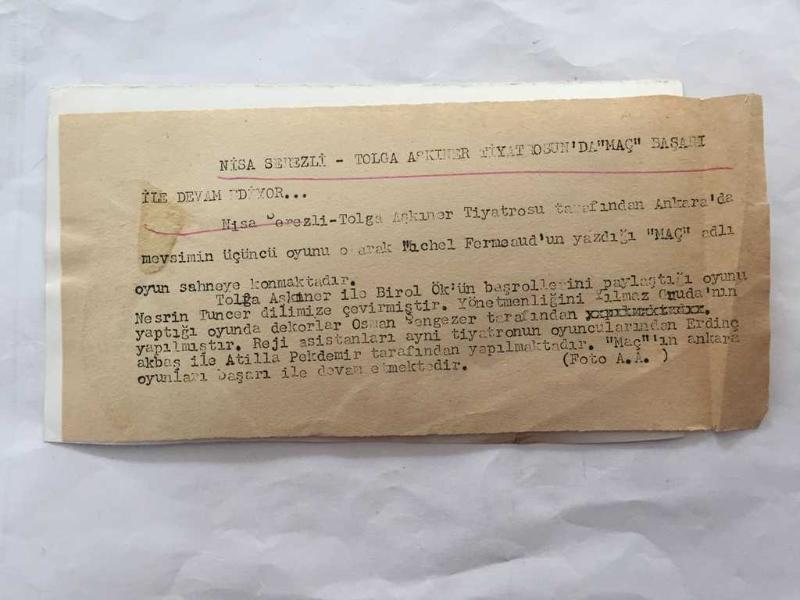 TOLGA AŞKINER'İN ORİJİNAL FOTOĞRAFI - 18 x 10 cm EBADINDA - NİSA SEREZLİ-TOLGA AŞKINER TİYATROSU'NDA MICHAEL FERMEAUD'UN ''MAÇ'' ADLI OYUNUNDAN BİR KARE, başlıklı ürün, Efemera, Müzik, Sinema > Fotoğraflar > Sinema kategorisi altında İkinci El olarak satılmaktadır.