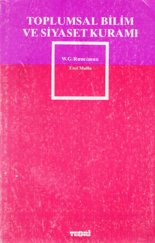 TOPLUMSAL BİLİM VE SİYASET KURAMI, W. G. Runciman tarafından kaleme alınmıştır. Kitap 1986 yılında Teori Yayınları tarafından [Ankara] yayınlanmıştır. Bu baskının çevirisi Erol Mutlu tarafından yapılmıştır. 141 sayfadır. TOPLUMSAL BİLİM VE SİYASET KURAMI adlı eser Türkçe dilindedir.