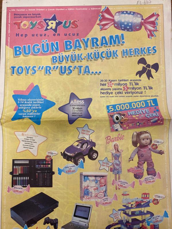 TOYS GAZETESİ DOĞUM GÜNÜ HEDİYESİ-Axess-advantage-Toysrus-bugün bayram büyük küçük herkes toys’r’us’ta -oyuncak katalogu-aile oyunları-bebek ürünleri-Çocuk giysileri-eğitici oyuncaklar-eğlenceli-PlayStation iki-sayfa sayısı dört
