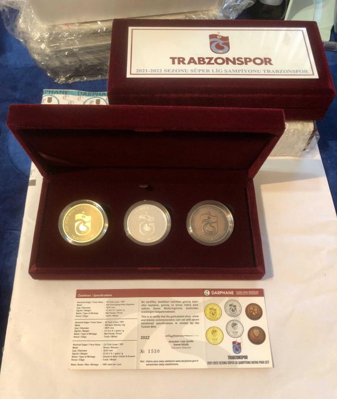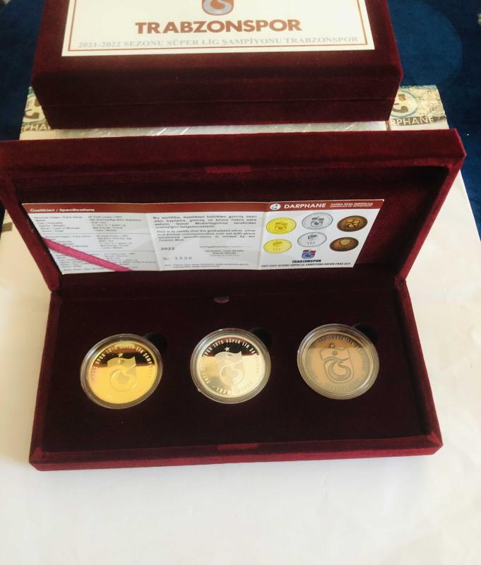 DARPHANE Hatıra basım TRABZONSPOR 2022/21 Süper Lig ŞAMPİYONLUK SETİ Hava geçirmez koruyucu KAPSÜLLERİNDE herbiri… ALTIN KAPLAMA 31.10gr Gümüş üzeri+GÜMÜŞ 31.10gr +BRONZ. 23.33gr ÜÇ3 adetli - SET- özel kadife kutusunda DARPHANE SERTİFİKA LI.. /HATASIZ/ ürünler yeni..