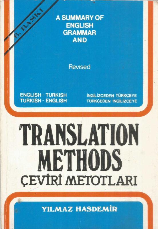 TRANSLATION METHODS ÇEVİRİ METODLARI 6.BASKI, YILMAZ HASDEMİR tarafından kaleme alınmıştır. Kitap 1987 yılında BURÇ MATBAACILIK tarafından [İSTANBUL] yayınlanmıştır. 383 sayfadır. TRANSLATION METHODS ÇEVİRİ METODLARI 6.BASKI adlı eser Türkçe dilindedir.