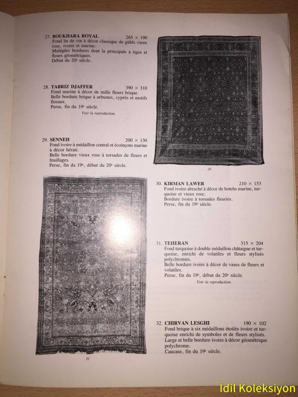 TRES BEL ENSEMBLE DE TAPİS DE LA PERSE ET DU CAUCASE DES 19E ET 20E SİECLES / DROUT MONTAİGNE / ME PİERRE CORNETTE DE SAİNT CYR / M. JACQUES KASSAPİAN / EXPOSİTİONS PUBLİQUES - FRANSIZCA DERGİ - KATALOG (19. VE 20. YÜZYILLARDAN ÇOK GÜZEL İRAN VE KAFKAS HALI TAKIMI)