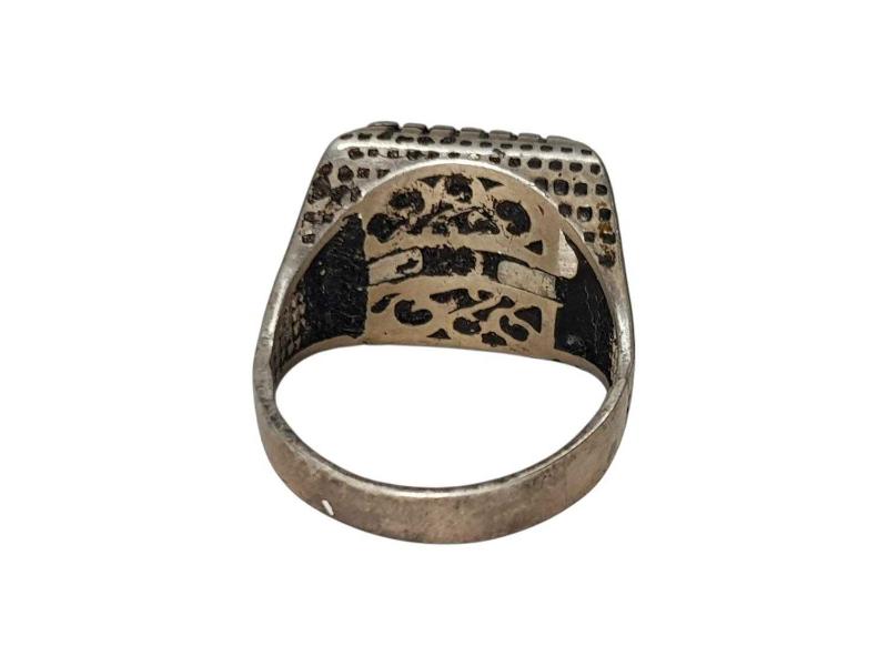 TACINDA TUĞRA FORMU İLE KENARLARINDA AY YILDIZLAR BULUNAN 925 AYAR GÜMÜŞ ERKEK YÜZÜĞÜ. YÜZÜK NUMARASI: 28 AĞIRLIK: 14,4 GRAM