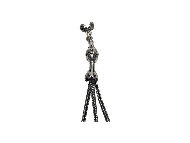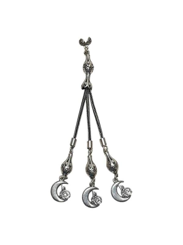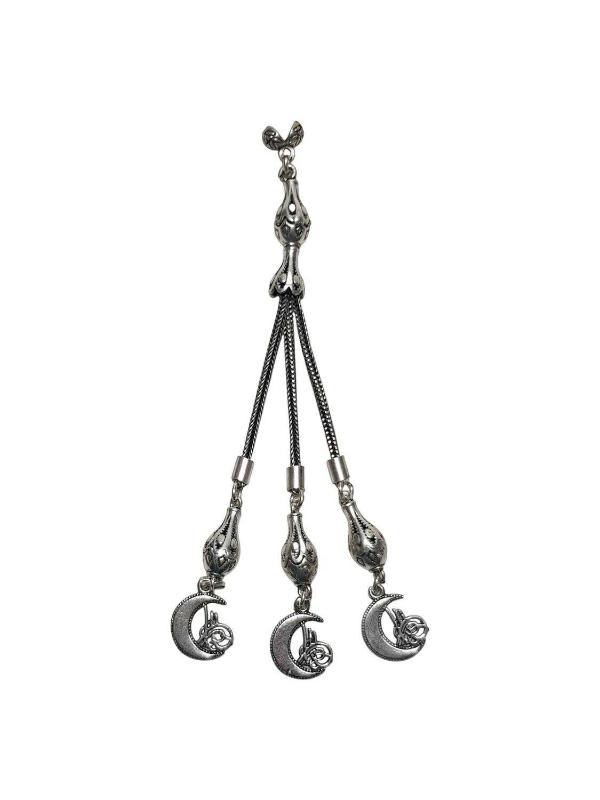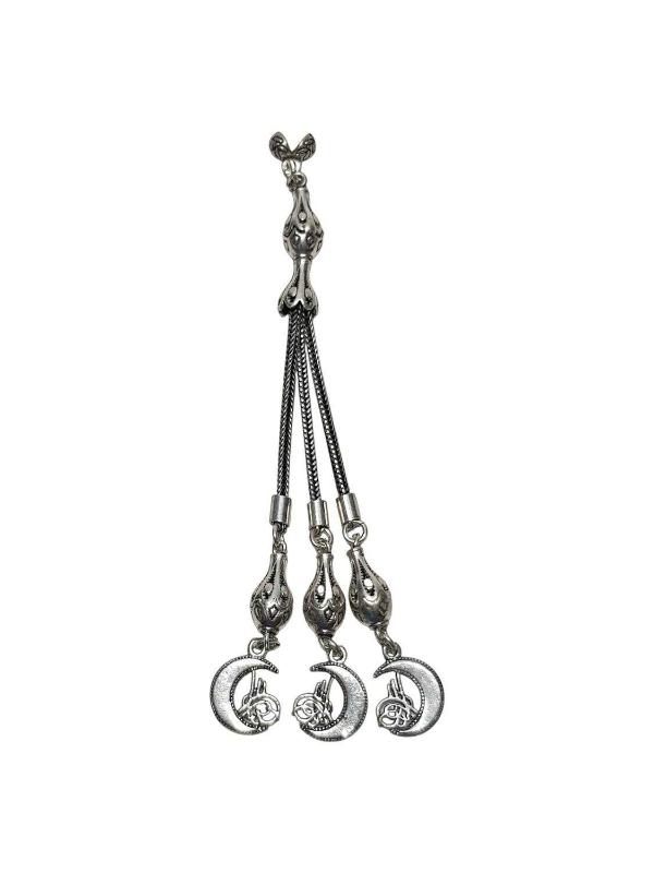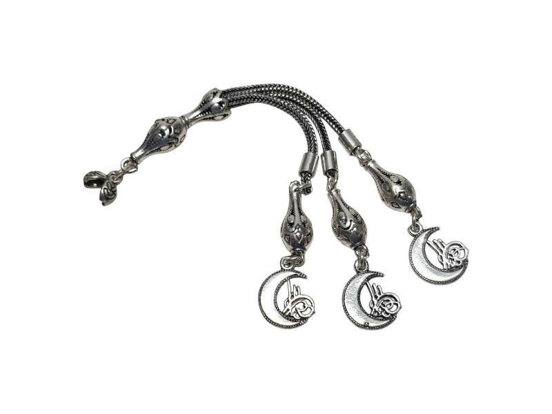 UÇLARINDA HİLAL İÇİNDE TUĞRALAR BULUNAN, HİÇ KULLANILMAMIŞ 925 AYAR GÜMÜŞ TESPİH PÜSKÜLÜ - TESPİH SALLAMASI. UZUNLUK: 10 CM AĞIRLIK: 9 GRAM