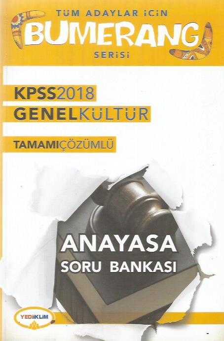TÜM ADAYLAR İÇİN KPSS 2018 GENEL KÜLTÜR TAMAMI ÇÖZÜMLÜ ANAYASA SORU BANKASI BUMERANG SERİSİ, KOMİSYON tarafından kaleme alınmıştır. Kitap 2018 yılında YEDİİKLİM YAYINCILIK tarafından [ANKARA] yayınlanmıştır. 222 sayfadır. TÜM ADAYLAR İÇİN KPSS 2018 GENEL KÜLTÜR TAMAMI ÇÖZÜMLÜ ANAYASA SORU BANKASI BUMERANG SERİSİ adlı eser Türkçe dilindedir.