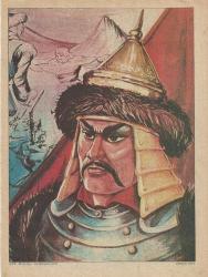 ** TÜRK BÜYÜKLERİNDEN CENGİZ HAN KONULU ESKİ ÇİZİM PASPARTULUK RESİM ** 27 x 20 cm.ebadında,eski bir dergiden alınma,paspartu ve çerçeve yapıldığında şahane bir görüntü oluşturabilecek Türk Büyükleri serisinden bir resim...