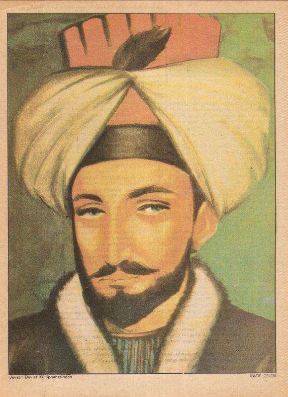 ** TÜRK BÜYÜKLERİ SERİSİNDEN KATİP ÇELEBİ ** 27 x 20 cm.ebadında,eski bir dergiden alınma,paspartu ve çerçeve yapıldığında şahane bir görüntü oluşturabilecek Türk Büyükleri serisinden bir resim...