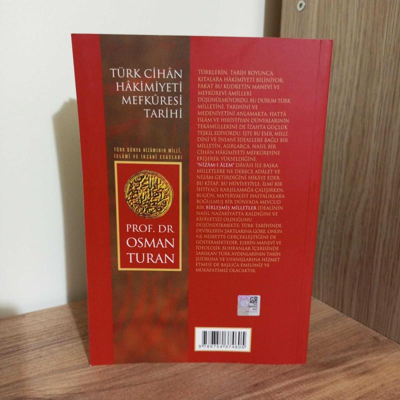 TÜRK CİHAN HAKİMİYETİ MEFKURESİ TARİHİ TÜRK DÜNYA NİZAMININ MİLLİ İSLAMİ VE İNSANİ ESASLARI, Prof. Dr. Osman Turan tarafından kaleme alınmıştır. Kitap 2020 yılında ÖTÜKEN NEŞRİYAT tarafından 9789754374605 ISBN kodu ile yayınlanmıştır. 560 sayfadır. TÜRK CİHAN HAKİMİYETİ MEFKURESİ TARİHİ TÜRK DÜNYA NİZAMININ MİLLİ İSLAMİ VE İNSANİ ESASLARI adlı eser Türkçe dilindedir.