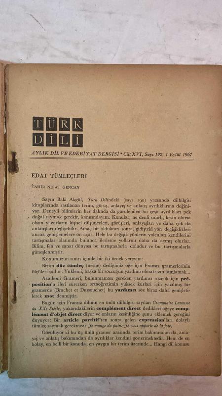 TÜRK DİLİ, AYLIK DİL VE YAZIN DERGİSİ - 1 EYLÜL 1967 SAYI: 192 TAHİR NEJAT GENCAN: EDAT TÜMLEÇLERİ - TAHSİN SARAÇ: ÇAĞLARDAN ÖFKELERİN GÖK GÜRLEMESİ - Ö.A.A: YORUMLAR - İBRAHİM ZEKİ BURDURLU: ATEŞE VERİYORUM EGE’Yİ - NEVZAT ÜSTÜN: BİR İNSAN - ERDOĞAN ALKAN: SİYAH GÜL - AHMET NADİR CANER: EZİK TUTKU - CAVİT ORHAN TÜTENGİL: İSTANBUL ÜNİVERSİTESİNDE TOPLUMBİLİM ÖĞRETİMİ VE ZİYA GÖKALP - OĞUZ KÂZIM ATOK: BOŞUNA OYUN - ÖZDEMİR NUTKU: ATOM ÇAĞI TİYATROSU ÜZERİNE DENEMELER - ŞAHİNKAYA DİL: SEVİ ORMANINDA - ADNAN ARDAĞI: MAYIS ÖZLEMİ - KÂMURAN ŞİPAL: DÖRT DUVAR - MEHMET GÜNER DEMİRAY: YURDUMUN ÇOCUKLARI - GÜLTEN AKIN: KIZLAR DEĞİRMENİ (RADYO OYUNU) - SABİH ŞENDİL: KONUŞAN ÇORAPLAR - M. BAŞARAN: KALIN MAVİ SES - İSMAİL ÂŞIKOĞLU: DÖNÜŞ OLAYLAR VE GERÇEKLER- 80 SAYFA, ŞERAFETTİN TURAN tarafından kaleme alınmıştır. Eser CAHİT KÜLEBİ editörlüğünde hazırlanmıştır. TÜRK DİLİ, AYLIK DİL VE YAZIN DERGİSİ - 1 EYLÜL 1967 SAYI: 192 TAHİR NEJAT GENCAN: EDAT TÜMLEÇLERİ - TAHSİN SARAÇ: ÇAĞLARDAN ÖFKELERİN GÖK GÜRLEMESİ - Ö.A.A: YORUMLAR - İBRAHİM ZEKİ BURDURLU: ATEŞE VERİYORUM EGE’Yİ - NEVZAT ÜSTÜN: BİR İNSAN - ERDOĞAN ALKAN: SİYAH GÜL - AHMET NADİR CANER: EZİK TUTKU - CAVİT ORHAN TÜTENGİL: İSTANBUL ÜNİVERSİTESİNDE TOPLUMBİLİM ÖĞRETİMİ VE ZİYA GÖKALP - OĞUZ KÂZIM ATOK: BOŞUNA OYUN - ÖZDEMİR NUTKU: ATOM ÇAĞI TİYATROSU ÜZERİNE DENEMELER - ŞAHİNKAYA DİL: SEVİ ORMANINDA - ADNAN ARDAĞI: MAYIS ÖZLEMİ - KÂMURAN ŞİPAL: DÖRT DUVAR - MEHMET GÜNER DEMİRAY: YURDUMUN ÇOCUKLARI - GÜLTEN AKIN: KIZLAR DEĞİRMENİ (RADYO OYUNU) - SABİH ŞENDİL: KONUŞAN ÇORAPLAR - M. BAŞARAN: KALIN MAVİ SES - İSMAİL ÂŞIKOĞLU: DÖNÜŞ OLAYLAR VE GERÇEKLER- 80 SAYFA adlı eser Türkçe dilindedir.