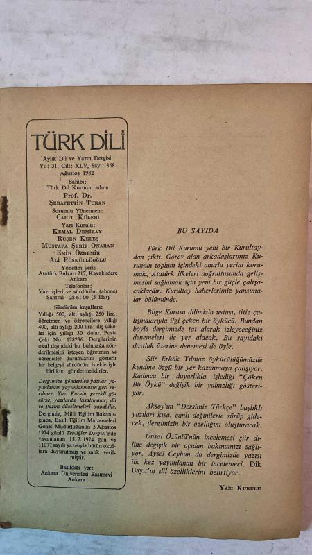 TÜRK DİLİ, AYLIK DİL VE YAZIN DERGİSİ - AĞUSTOS 1982 SAYI: 368 - NAHİT ULVİ AKGÜN - ÜNSAL ÖZÜNLÜ - MEHMET SALİHOĞLU - HASAN ŞİMŞEK - ÖZDEMİR İNCE - GANGA PRASAD VIMAL - ÖMER ASIM AKSOY - BEHÇET AYSAN - AYSEL CEYHUN - TURGAY KANTÜRK - FERGUN ÖZELLİ - HAYATİ BAKİ - SALİM ŞENGİL - YALÇIN ULUKAYA - ŞİİR ERKÖK YILMAZ - ALÂADDİN SOYKAN - AYTEN UYAN - OKTAY AKINCI - AZİZ SİVASLIOĞLU - SEVDA ŞENER - GÜLŞEN KARAKADIOĞLU - ÂLİM ŞERİF ONARAN - MUZAFFER UYGUNER - TARIK DURSUN K. - TÜRKER ACAROĞLU - VEDAT YAZICI - O. NURİ POYRAZOĞLU - KÂMİLİ ÇELEBİLER - İSMAİL ULÇUGÜR “DOSTLARIM ÜZERİNE” DİYE SÖZE GİRİŞEREK - PARİS - ŞİİR DİLİNDE SAPMALAR - SOKRATES - ANILARDA KALAN II - G.P. VIMAL - ŞİİRLER - DERSİMİZ TÜRKÇE - YAKILMIŞ ŞİİRLER’DEN - DİK BAYIR’DA DİL VE ANLATIM - BAHÇE - BÖYLE BİRİ VAR MI? - SABAH KARANFİLLE - GÜNÜN SONUNDA ŞENLİK - YAYGI - ÇÖKEN BİR ÖYKÜ - SULAR AKARKEN GÜZELDİR - GÜZ - PİYAN BAĞI - OKUL BİTTİ - KUKLA TİYATROSU - MAUDE’U BİRAZ DİNLER MİSİNİZ - - TAM TAKIM EKSİKSİZ 62 SAYFA adlı eser, Kitap > Süreli Yayınlar > Dergiler > Siyaset kategorisinde İkinci El olarak satıştadır.