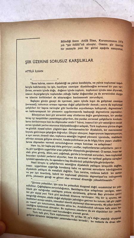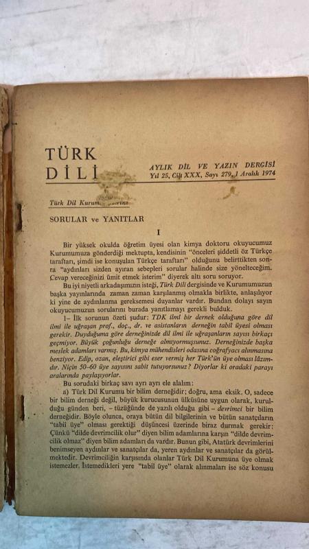 TÜRK DİLİ, AYLIK DİL VE YAZIN DERGİSİ - ARALIK 1974 SAYI: 279 TDK: TÜRK DİL KURUMU ÜZERİNE SORULAR VE YANITLAR - ATTİLA İLHAN: ŞİİR ÜZERİNE SORUSUZ KARŞILIKLAR - ATTİLA İLHAN: GÖZLÜKLÜ HAMDİ'NİN NOTLARI - KEMAL DEMİRAY: BİR YAZIM SORUNU: DE BAĞLACI - ALİM ŞERİF ONARAN: SİNEMADA DİL - SALAH BİRSEL: BOĞAZİÇİ YANDAN YANDAN - FAZIL HÜSNÜ DAĞLARCA: MUMLAR - NECATİ CUMALI: KÖSTEBEK - METİN ELOĞLU: ALACA - ALİ PÜSKÜLLÜOĞLU: SORULAR - HALUK AKER: SEVGİYİ AÇITIR DÜNYA - HALİL UYSAL: BOZYAZI - ÖZEL ARABUL: SU YANGINI - ENVER NACİ GÖKŞEN: ÇIKMA DURUMU (-DEN) VE KAPSAMI - CAHİT ÖZTELLI: KOLAY SANILAN HALK EDEBİYATI - MEHMET SEYDA: ROMANCI GÜNLÜĞÜ - TERİM SÖZLÜKLERİMİZDEN ÖRNEKLER - BURHAN ARPAD: KEMAL AĞABEY ÖLDÜ - SAADET TIMUR ULÇUGÜR: BEKİRLER - MUZAFFER IZCÜ: ÜZERİNİZDE ESKİSİN BAYRAM ALİ BEY - YAMAN ÖRS: TİP DİLİNİ SADELEŞTİRME ÇABALARI - MUZAFFER UYGUNER: TÜRK FELSEFESİNİN BOYUTLARI - EMİN RECEBOĞLU: DÜNYA ŞİİRİ - 60 SAYFA adlı eser, Kitap > Süreli Yayınlar > Dergiler > Siyaset kategorisinde İkinci El olarak satıştadır.
