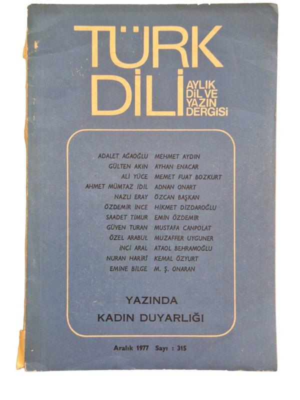 TÜRK DİLİ AYLIK DİL VE YAZIN DERGİSİ / ARALIK 1977 / SAYI:315 ''YAZINDA KADIN DUYARLIĞI'' adlı eser, Kitap > Diğer Kitaplar kategorisinde İkinci El olarak satıştadır.