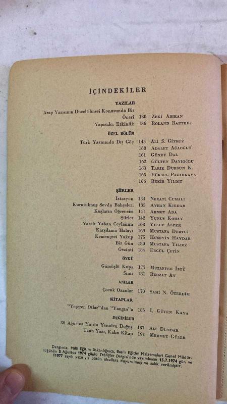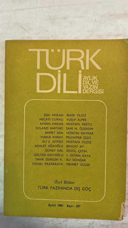 TÜRK DİLİ, AYLIK DİL VE YAZIN DERGİSİ - EYLÜL 1981 SAYI: 357 AYHAN KIRDAR - ZEKİ ARIKAN - BEKİR YILDIZ - NECATİ CUMALI - YUSUF ALPER - MUSTAFA DERTLİ - ROLAND BARTHES - SAMİ N. ÖZERDİM - AHMET ADA - HÜSEYİN HAYDAR - YUNUS KORAY - MUZAFFER İZGÜ - ALİ S. GİTMEZ - ADALET AĞAOĞLU - GÜNEY DAL - GÜLTEN DAYIOĞLU - TARIK DURSUN K. - YÜKSEL PAZARKAYA - ERGÜL ÇETİN - İ. GÜVEN KAYA - ALİ DÜNDAR - MEHMET GÜLER - MUSTAFA YILDIZ - BEHZAT AY ARAP YAZISININ DÜZELTİLMESİ KONUSUNDA BİR ÖNERİ - YAPISALCI ETKİNLİK - TÜRK YAZININDA DIŞ GÖÇ - İSTASYON - KURUTULMUŞ SEVDA BAHÇELERİ - KUŞLARIN ÖĞRENCİSİ - YARALI YABAN CEYLANIM - KARŞILAMA HALAYI - KEMENÇECİ YAKUP - BİR GÜN - GEZİNTİ - GÜMÜŞLÜ KUPA - SINIR - ÇOCUK OZANLAR - “YEŞEREN OTLAR”DAN “YANGIN”A - 30 AĞUSTOS YA DA YENİDEN DOĞUŞ - UZUN YAZI, KALIN KİTAP - TAM TAKIM EKSİKSİZ 62 SAYFA adlı eser, Kitap > Süreli Yayınlar > Dergiler > Siyaset kategorisinde İkinci El olarak satıştadır.
