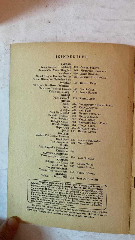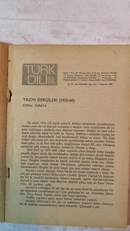 TÜRK DİLİ, AYLIK DİL VE YAZIN DERGİSİ - HAZİRAN 1978 SAYI: 321 CEMAL SÜREYA - KEMAL ATEŞ - MUZAFFER UYGUNER - OĞUZ TANSEL - SABAHATTİN KUDRET AKSAL - ERTUĞRUL OĞUZ FIRAT - EDİP CANSEVER - İLHAN BAŞGÖZ - EMİN ÖZDEMİR - HASAN VAROL - ALİ YÜCE - ZEYYAT SELİMOĞLU - HİKMET DİZDAROĞLU - MÜCAHİT VURAL - NECATİ ZEKERİYA - NAZLI ERAY - ORHAN URAL - HASİBE AYTEN - HALİL KOCAGÖZ - AHMET TELLI - SEVGİ ÖZEL - AHMET UYSAL - YAŞAR MIRAÇ - NEDİM GÜRSEL - SAMİ N. ÖZERDİM - BİLGİN ADALI - ÖZDEMİR İNCE - TUĞRUL SARGIN YAZIN DERGİLERİ (1950-60) - ANADOLU'DA YAZIN DERGİLERİ - YANILSAMA - AHMET HAŞİM ÜZERİNE NOTLAR - NÂZIM HİKMET'TE BETİMLEME VE AYRILIKLAR - TÜRKÇEDE ÖNADLAR (SIFATLARIN) TAMALAMA İÇİNDEKİ SIRALARI - KUKLA'NIN ESKİLİĞİ - OĞUZ TANSEL'LE - ŞİİRLER - KÖROĞLU - SEVİ İLE DOSTLUK - EVRENİN BOYUTLARI - NİSAN TÜRKÜLERİ - BEBEĞİN GÖZLERİ - ELMALI DAĞLARI - KIŞIN GÜLÜ - MADDE - CANINA KIYMAYI - DÜŞÜNÜYOR - İŞTE YAŞIYORUM - BATI KAYNAKLI SÖZCÜKLERE KARŞILIKLAR - YAZIN DE - TAM TAKIM EKSİKSİZ 80 SAYFA adlı eser, Kitap > Süreli Yayınlar > Dergiler > Siyaset kategorisinde İkinci El olarak satıştadır.