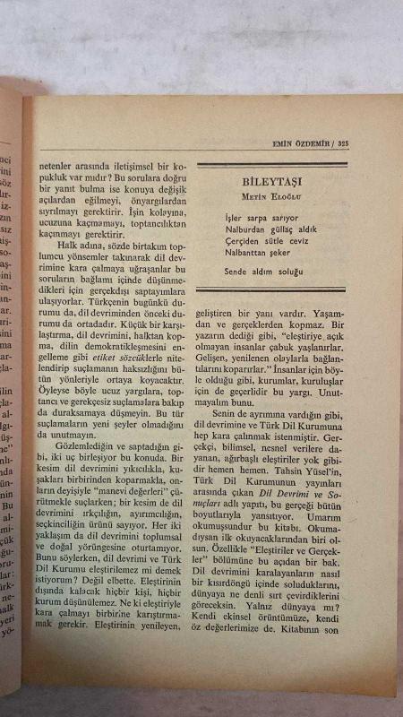 TÜRK DİLİ, AYLIK DİL VE YAZIN DERGİSİ - HAZİRAN 1982 SAYI: 3661 EMİN ÖZDEMİR - METİN ELOĞLU - ALİ PÜSKÜLLÜOĞLU - TARIK DURSUN K. - HASAN ŞİMŞEK - MEHMET DELİGÖNÜL - MEHMET SALİHOĞLU - İLHAN BERK - METİN ALTIOK - TUNCER UÇAROL - AHMET TELLİ - BEHÇET AYSAN - KEMAL DEMİRAY - ERDOĞAN ALKAN - HÜROL TAŞDELEN - İSMAİL ULÇUGÜR - AYDIN YALKUT - İBRAHİM YILDIZ - ÖMER ASIM AKSOY - M. Ş. ONARAN - ORHAN URAL - TALİP APAYDIN - NAİM TİRALİ - AYTEN UYAN - SEVDA ŞENER - GÜLŞEN KARAKADIOĞLU - ÂLİM ŞERİF ONARAN - HALDUN ARMAĞAN - RAMİS DARA BİR TÜRKÇE ÖĞRETMENİNE MEKTUP - BİLEYTAŞI - TARİH, COĞRAFYA, YURT BİLGİSİ - "DOST DOST DİYE DİYE..." - HER YER AKŞAM - DİVAN ŞİİRİ GÜNDEMDE - GÜLE KARŞI - EL YAZILARINA VURUYOR GÜNEŞ, IV - YAZDAN ÖNCE VE SONRA - ŞİİRLER ÜSTÜNE GÜNLÜK - ISLIK - YAKILMIŞ ŞİİRLER'DEN - ŞİKÂYET Mİ, ŞİKAYET Mİ? - OYUN - BİR VİŞNE DALINDA - BOŞUNA ÇABALAR - ANAMIN GÖZLERİ - SEVİ GÜLLERİ - DERSİMİZ TÜRKÇE - RİFAT ILGAZ'LA - ANILARDA NECATİGİL - "HAVAN KİME GÜ - TAM TAKIM EKSİKSİZ 62 SAYFA adlı eser, Kitap > Süreli Yayınlar > Dergiler > Siyaset kategorisinde İkinci El olarak satıştadır.