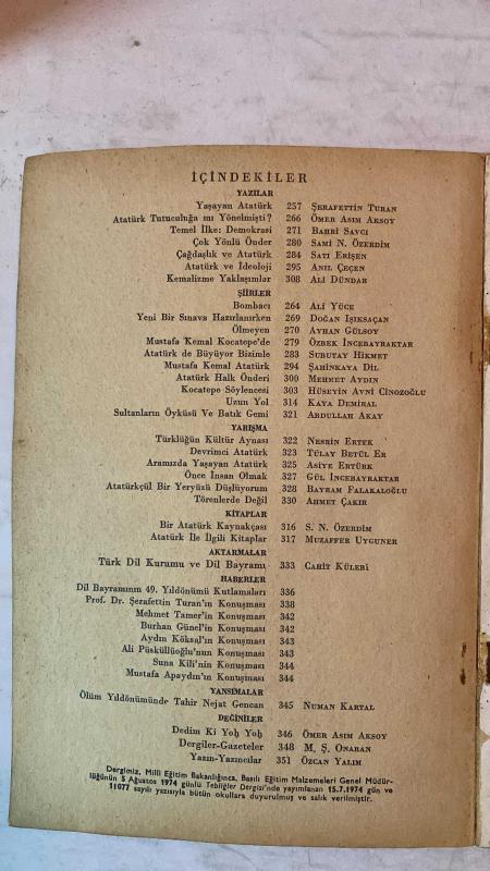 TÜRK DİLİ, AYLIK DİL VE YAZIN DERGİSİ - KASIM 1981 SAYI: 359 ŞERAFETTİN TURAN - ALİ DÜNDAR - ALİ YÜCE - ÖMER ASIM AKSOY - DOĞAN IŞIKSAÇAN - AYHAN GÜLSOY - BAHRİ SAVCI - KAYA DEMİRAL - MUZAFFER UYGUNER - ABDULLAH AKAY - NESRİN ERTEK - TÜLAY BETÜL ER - ÖZBEK İNCEBAYRAKTAR - ASİYE ERTÜRK - SAMİ N. ÖZERDİM - GÜL İNCEBAYRAKTAR - SUBUTAY HİKMET - BAYRAM FALAKALOĞLU - SATI ERİŞEN - AHMET ÇAKIR - ŞAHİNKAYA DİL - CAHİT KÜLEBİ - ANIL ÇEÇEN - NUMAN KARTAL - MEHMET AYDIN - M. Ş. ONARAN - H. AVNİ CİNOZOĞLU - ÖZCAN YALIM YAŞAYAN ATATÜRK - ATATÜRK TUTUCULUĞA MI YÖNELMİŞTİ? - TEMEL İLKE: DEMOKRASİ - ÇOK YÖNLÜ ÖNDER - ÇAĞDAŞLIK VE ATATÜRK - ATATÜRK VE İDEOLOJİ - KEMALİZME YAKLAŞIMLAR - ŞİİRLER - BOMBAJI - YENİ BİR SINAVA HAZIRLANIRKEN - ÖLMEYEN - MUSTAFA KEMAL KOCATEPE’DE - ATATÜRK DE BÜYÜYOR BİZİMLE - MUSTAFA KEMAL ATATÜRK - ATATÜRK HALK ÖNDERİ - KOCATEPE SÖYLENCESİ - UZUN YOL - SULTANLARIN ÖYKÜSÜ VE BATIK GEMİ - YARIŞMA - TÜRKLÜĞÜN KÜLTÜR AYNASI - DEVRİMCİ ATATÜRK ARAM - TAM TAKIM EKSİKSİZ 94 SAYFA, ŞERAFETTİN TURAN tarafından kaleme alınmıştır. Eser CAHİT KÜLEBİ editörlüğünde hazırlanmıştır. TÜRK DİLİ, AYLIK DİL VE YAZIN DERGİSİ - KASIM 1981 SAYI: 359 ŞERAFETTİN TURAN - ALİ DÜNDAR - ALİ YÜCE - ÖMER ASIM AKSOY - DOĞAN IŞIKSAÇAN - AYHAN GÜLSOY - BAHRİ SAVCI - KAYA DEMİRAL - MUZAFFER UYGUNER - ABDULLAH AKAY - NESRİN ERTEK - TÜLAY BETÜL ER - ÖZBEK İNCEBAYRAKTAR - ASİYE ERTÜRK - SAMİ N. ÖZERDİM - GÜL İNCEBAYRAKTAR - SUBUTAY HİKMET - BAYRAM FALAKALOĞLU - SATI ERİŞEN - AHMET ÇAKIR - ŞAHİNKAYA DİL - CAHİT KÜLEBİ - ANIL ÇEÇEN - NUMAN KARTAL - MEHMET AYDIN - M. Ş. ONARAN - H. AVNİ CİNOZOĞLU - ÖZCAN YALIM YAŞAYAN ATATÜRK - ATATÜRK TUTUCULUĞA MI YÖNELMİŞTİ? - TEMEL İLKE: DEMOKRASİ - ÇOK YÖNLÜ ÖNDER - ÇAĞDAŞLIK VE ATATÜRK - ATATÜRK VE İDEOLOJİ - KEMALİZME YAKLAŞIMLAR - ŞİİRLER - BOMBAJI - YENİ BİR SINAVA HAZIRLANIRKEN - ÖLMEYEN - MUSTAFA KEMAL KOCATEPE’DE - ATATÜRK DE BÜYÜYOR BİZİMLE - MUSTAFA KEMAL ATATÜRK - ATATÜRK HALK ÖNDERİ - KOCATEPE SÖYLENCESİ - UZUN YOL - SULTANLARIN ÖYKÜSÜ VE BATIK GEMİ - YARIŞMA - TÜRKLÜĞÜN KÜLTÜR AYNASI - DEVRİMCİ ATATÜRK ARAM - TAM TAKIM EKSİKSİZ 94 SAYFA adlı eser Türkçe dilindedir.