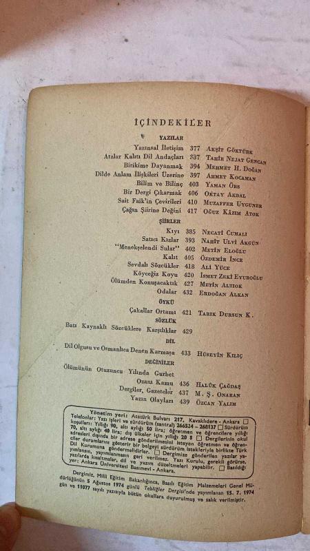TÜRK DİLİ, AYLIK DİL VE YAZIN DERGİSİ - MAYIS 1979 SAYI: 332 AKŞİT GÖKTÜRK - MUZAFFER UYGUNER - NECATİ CUMALI - OĞUZ KAZIM ATOK - TAHİR NEJAT GENCAN - ALİ YÜCE - NAHİT ULVİ AKGÜN - İSMET ZEKİ EYÜBOĞLU - MEHMET H. DOĞAN - TARIK DURSUN K. - AHMET KOCAMAN - METİN ALTIOK - METİN ELOĞLU - ERDOĞAN ALKAN - YAMAN ÖRS - HÜSEYİN KILIÇ - ÖZDEMİR İNCE - HALUK ÇAĞDAŞ - OKTAY AKBAL - M. Ş. ONARAN - ÖZCAN YALIM YAZINSAL İLETİŞİM - ATALAR KALITI DİL ANDAÇLARI - BİRİKİME DAYANMAK - DİLDE ANLAM İLİŞKİLERİ ÜZERİNE - BİLİM VE BİLİNÇ - BİR DERGİ ÇIKARMAK - SAİT FAİK'İN ÇEVİRİLERİ - ÇAĞIN ŞİİRİNE DEĞİNİ - ŞİİRLER - KIYI - SATICI KIZLAR - "MENEKŞELENDİ SULAR" - KALİT - SEVDALI SÖZCÜKLER - KÖYCEĞİZ KOYU - ÖLÜMDEN KONUŞACAKTIK - ODALAR - ÖYKÜLER - ÇAKALLAR ORTAMI - SÖZLÜK - BATI KAYNAKLI SÖZCÜKLERE KARŞILIKLAR - DİL - DİL OLGUSU VE OSMANLICA DENEN KARMAŞA - DEĞİNİLER - ÖLÜMÜNÜN OTUZUNCU YILINDA GURBET OZANI KAMU - DERGİLER, GAZETELER - YAZIN OLAYLARI - TAM TAKIM EKSİKSİZ 72 SAYFA adlı eser, Kitap > Süreli Yayınlar > Dergiler > Siyaset kategorisinde İkinci El olarak satıştadır.