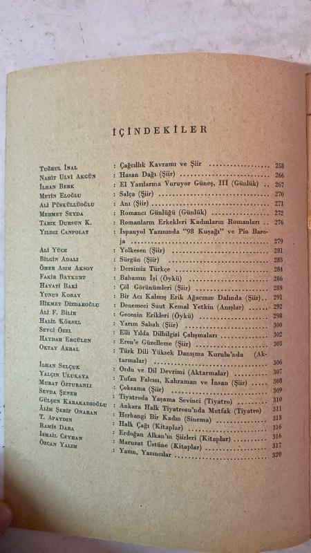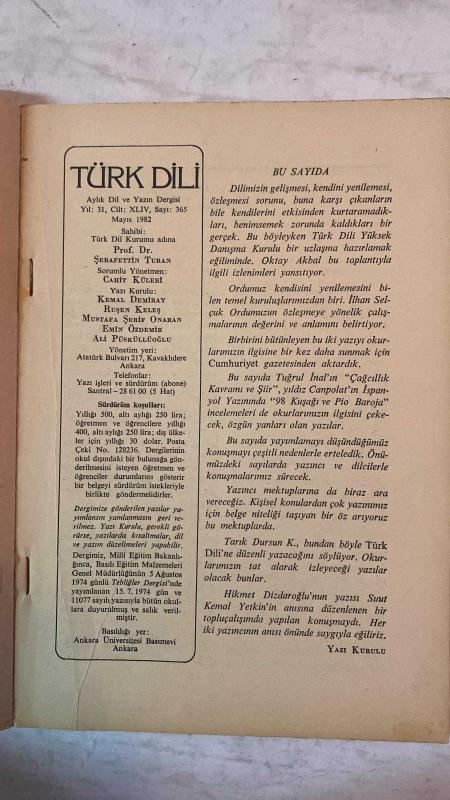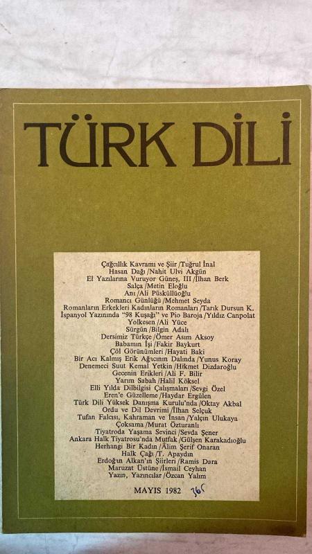 TÜRK DİLİ, AYLIK DİL VE YAZIN DERGİSİ - MAYIS 1982 SAYI: 360 TUĞRUL İNAL - NAHİT ULVİ AKGÜN - İLHAN BERK - METİN ELOĞLU - ALİ PÜSKÜLLÜOĞLU - MEHMET SEYDA - TARIK DURSUN K. - YILDIZ CANPOLAT - ALİ YÜCE - BİLGİN ADALI - ÖMER ASIM AKSOY - FAKİR BAYKURT - HAYATİ BAKİ - YUNUS KORAY - HİKMET DİZDAROĞLU - ALİ F. BİLİR - HALİL KÖKSEL - SEVGİ ÖZEL - HAYDAR ERGÜLEN - OKTAY AKBAL - İLHAN SELÇUK - YALÇIN ULUKAYA - MURAT ÖZTURANLI - SEVDA ŞENER - GÜLŞEN KARAKADIOĞLU - ÂLİM ŞERİF ONARAN - TALİP APAYDIN - RAMİS DARA - İSMAİL CEYHAN - ÖZCAN YALIM ÇAĞCILLIK KAVRAMI VE ŞİİR - HASAN DAĞI - EL YAZILARINA VURUYOR GÜNEŞ, III - SALÇA - ANI - ROMANCI GÜNLÜĞÜ - ROMANLARIN ERKEKLERİ KADINLARIN ROMANLARI - İSPANYOL YAZININDA "98 KUŞAĞI" VE PIO BAROJA - YOLKESEN - SÜRGÜN - DERSİMİZ TÜRKÇE - BABAMIN İŞİ - ÇÖL GÖRÜNÜMLERİ - BİR ACI KALMIŞ ERİK AĞACININ DALINDA - DENEMECİ SUUT KEMAL YETKİN - GECENİN ERİKLERİ - YARIM SABAH - ELLİ YILDA DİLBİLGİSİ ÇALIŞMALARI - EREN'E GÜZELLEME - TÜRK - TAM TAKIM EKSİKSİZ 62 SAYFA, ŞERAFETTİN TURAN tarafından kaleme alınmıştır. Eser CAHİT KÜLEBİ editörlüğünde hazırlanmıştır. TÜRK DİLİ, AYLIK DİL VE YAZIN DERGİSİ - MAYIS 1982 SAYI: 360 TUĞRUL İNAL - NAHİT ULVİ AKGÜN - İLHAN BERK - METİN ELOĞLU - ALİ PÜSKÜLLÜOĞLU - MEHMET SEYDA - TARIK DURSUN K. - YILDIZ CANPOLAT - ALİ YÜCE - BİLGİN ADALI - ÖMER ASIM AKSOY - FAKİR BAYKURT - HAYATİ BAKİ - YUNUS KORAY - HİKMET DİZDAROĞLU - ALİ F. BİLİR - HALİL KÖKSEL - SEVGİ ÖZEL - HAYDAR ERGÜLEN - OKTAY AKBAL - İLHAN SELÇUK - YALÇIN ULUKAYA - MURAT ÖZTURANLI - SEVDA ŞENER - GÜLŞEN KARAKADIOĞLU - ÂLİM ŞERİF ONARAN - TALİP APAYDIN - RAMİS DARA - İSMAİL CEYHAN - ÖZCAN YALIM ÇAĞCILLIK KAVRAMI VE ŞİİR - HASAN DAĞI - EL YAZILARINA VURUYOR GÜNEŞ, III - SALÇA - ANI - ROMANCI GÜNLÜĞÜ - ROMANLARIN ERKEKLERİ KADINLARIN ROMANLARI - İSPANYOL YAZININDA "98 KUŞAĞI" VE PIO BAROJA - YOLKESEN - SÜRGÜN - DERSİMİZ TÜRKÇE - BABAMIN İŞİ - ÇÖL GÖRÜNÜMLERİ - BİR ACI KALMIŞ ERİK AĞACININ DALINDA - DENEMECİ SUUT KEMAL YETKİN - GECENİN ERİKLERİ - YARIM SABAH - ELLİ YILDA DİLBİLGİSİ ÇALIŞMALARI - EREN'E GÜZELLEME - TÜRK - TAM TAKIM EKSİKSİZ 62 SAYFA adlı eser Türkçe dilindedir.