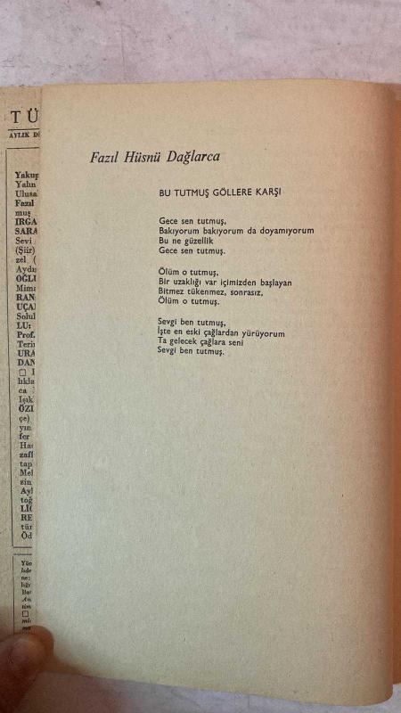 TÜRK DİLİ, AYLIK DİL VE YAZIN DERGİSİ - OCAK 1971 SAYI: 232 YAKUP KADRİ KARAOSMANOĞLU: YALIN SÖZ - AGÂH SIRRI LEVEND: ULUSAL KÜLTÜRÜMÜZDE BUNALIM - FAZIL HÜSNÜ DAĞLARCA: BU TUTMUŞ GÖLLERE KARŞI - CAHİT IRGAT: HASTANE AKI - TAHSİN SARAÇ: ÇİÇEK KARANLIĞINA TÜNEYEN SEVİ - SALÂH BİRSEL: BAAL - SEYFETTİN BAŞÇILLAR: GAZEL - NAHİT ÜLVİ AKGÜN: AYDINLIK - ALİ PÜSKÜLLÜOĞLU: SU - CENGİZ BEKTAŞ: MİMAR GÜNLÜĞÜ - SEDAT UMRAN: KARATAHTA - ERCÜMENT UÇARI: ÖLÜ - HALÛK AKER: SOLUK - HİKMET DİZDAROĞLU: DİLİ YANLIŞ DEĞERLENDİRME - ABDULLAH KIZILIRMAK: TERİMLER SORUNU ÜZERİNE - ORHAN URAL: PORTRE - MUZAFFER KAMADAN: YAZIM KURALLARIMIZ ÜZERİNE, BATI KAYNAKLI SÖZCÜKLERE KARŞILIKLAR VIII - MEHMET SEYDA: AMCA EVİ - SELÇUK BARAN: IŞIKLI PENCERELER - EMİN ÖZDEMİR: TIRPAN’IN DİLİ (ÖZ TÜRKÇE) - ADNAN BİNYAZAR: BİR OLAYIN BAŞLANGICI - MUZAFFER BUYRUKÇU: CENGİZ TUNCER VE HACİZLİ TOPRAK - MUZAFFER UYGUNER: KRAL UŞÜMESİ - ÖMER ATİLA: ATÇALI KEL MEHMET - S. S.: SOLJENİTZİN ÜSTÜNE - AYHAN HUNALP: MESUT İNSA - 60 SAYFA adlı eser, Kitap > Süreli Yayınlar > Dergiler > Siyaset kategorisinde İkinci El olarak satıştadır.
