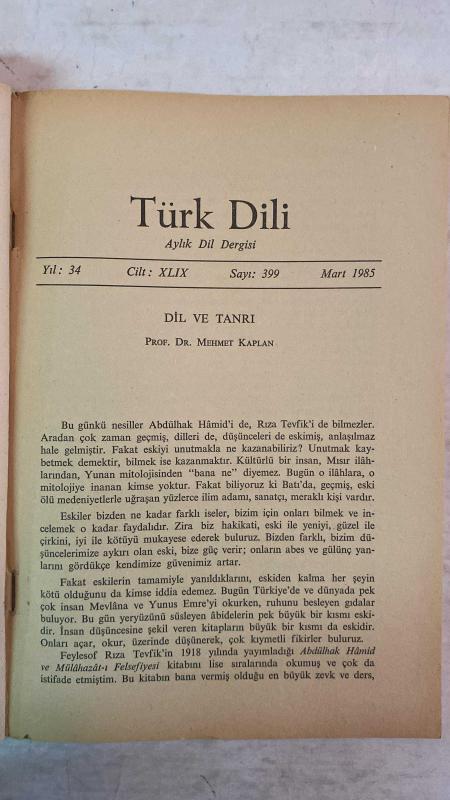TÜRK DİLİ, AYLIK DİL VE YAZIN DERGİSİ - SAYI: 399 / MART 1985 PROF. DR. MEHMET KAPLAN - DOÇ. DR. ZEYNEP KERMAN - DOÇ. DR. İSMAİL PARLATIR - İLHAN GEÇER - DOÇ. DR. AHMET B. ERCİLASUN - MİTHAT SERTOĞLU - YRD. DOÇ. DR. ERKAN TÜRKMEN - DOÇ. DR. TUNCER GÜLENSOY DİL VE TANRI - HALİD ZİYA UŞAKLIGİL VE TÜRK DİLİ - AHMET CEMİL - BİTER - ORHUN ABİDELERİNİN ARAŞTIRILMASI VE MUHTEVASI - ZARARIN NERESİNDEN DÖNÜLSE KÂRDIR - URDUCADA TÜRKÇE KELİMELER - W. ZAJACZKOWSKİ'NİN BİR YAZISI ÜZERİNE - TAM TAKIM EKSİKSİZ 62 SAYFA adlı eser, Kitap > Süreli Yayınlar > Dergiler > Siyaset kategorisinde İkinci El olarak satıştadır.