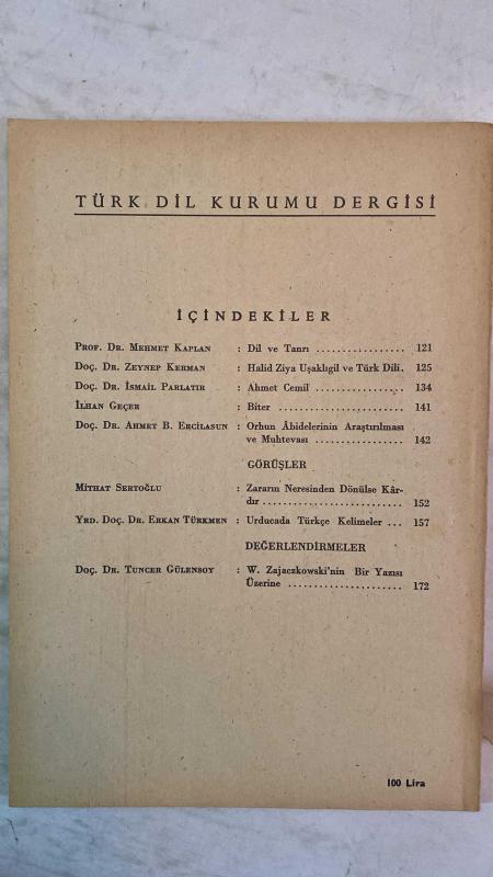 TÜRK DİLİ, AYLIK DİL VE YAZIN DERGİSİ - SAYI: 399 / MART 1985 PROF. DR. MEHMET KAPLAN - DOÇ. DR. ZEYNEP KERMAN - DOÇ. DR. İSMAİL PARLATIR - İLHAN GEÇER - DOÇ. DR. AHMET B. ERCİLASUN - MİTHAT SERTOĞLU - YRD. DOÇ. DR. ERKAN TÜRKMEN - DOÇ. DR. TUNCER GÜLENSOY DİL VE TANRI - HALİD ZİYA UŞAKLIGİL VE TÜRK DİLİ - AHMET CEMİL - BİTER - ORHUN ABİDELERİNİN ARAŞTIRILMASI VE MUHTEVASI - ZARARIN NERESİNDEN DÖNÜLSE KÂRDIR - URDUCADA TÜRKÇE KELİMELER - W. ZAJACZKOWSKİ'NİN BİR YAZISI ÜZERİNE - TAM TAKIM EKSİKSİZ 62 SAYFA, ŞERAFETTİN TURAN tarafından kaleme alınmıştır. Eser CAHİT KÜLEBİ editörlüğünde hazırlanmıştır. TÜRK DİLİ, AYLIK DİL VE YAZIN DERGİSİ - SAYI: 399 / MART 1985 PROF. DR. MEHMET KAPLAN - DOÇ. DR. ZEYNEP KERMAN - DOÇ. DR. İSMAİL PARLATIR - İLHAN GEÇER - DOÇ. DR. AHMET B. ERCİLASUN - MİTHAT SERTOĞLU - YRD. DOÇ. DR. ERKAN TÜRKMEN - DOÇ. DR. TUNCER GÜLENSOY DİL VE TANRI - HALİD ZİYA UŞAKLIGİL VE TÜRK DİLİ - AHMET CEMİL - BİTER - ORHUN ABİDELERİNİN ARAŞTIRILMASI VE MUHTEVASI - ZARARIN NERESİNDEN DÖNÜLSE KÂRDIR - URDUCADA TÜRKÇE KELİMELER - W. ZAJACZKOWSKİ'NİN BİR YAZISI ÜZERİNE - TAM TAKIM EKSİKSİZ 62 SAYFA adlı eser Türkçe dilindedir.
