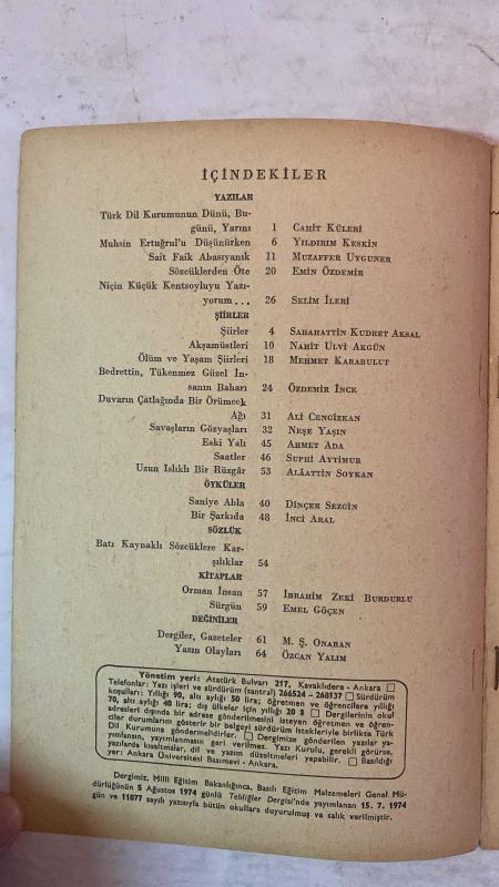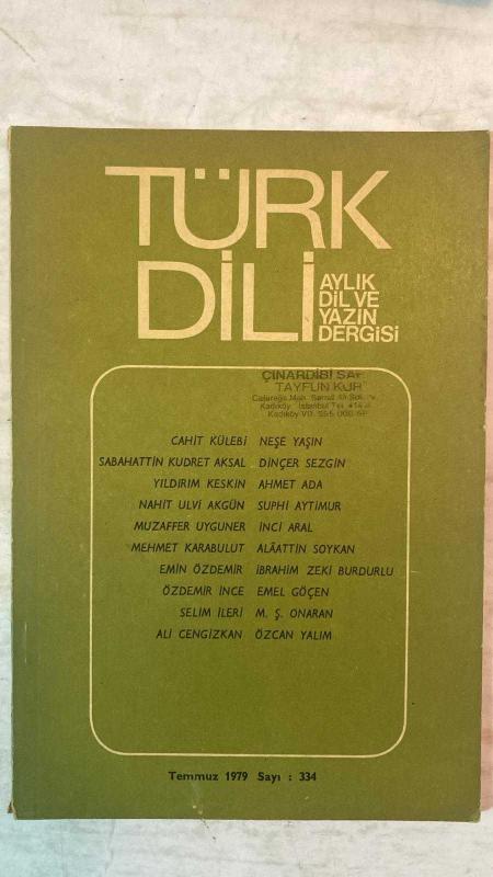TÜRK DİLİ, AYLIK DİL VE YAZIN DERGİSİ - TEMMUZ 1979 SAYI: 334 CAHİT KÜLEBİ - SABAHATTİN KUDRET AKSAL - YILDIRIM KESKİN - NEŞE YAŞIN - DİNÇER SEZGİN - AHMET ADA - NAHİT ULVİ AKGÜN - SUPHİ AYTİMUR - MUZAFFER UYGUNER - İNCİ ARAL - MEHMET KARABULUT - ALAATTİN SOYKAN - EMİN ÖZDEMİR - İBRAHİM ZEKİ BURDURLU - ÖZDEMİR İNCE - EMEL GÖÇEN - SELİM İLERİ - M. Ş. ONARAN - ALİ CENGİZKAN - ÖZCAN YALIM YAZILAR - TÜRK DİL KURUMUNUN DÜNÜ, BUGÜNÜ, YARINI - MUHSİN ERTUĞRUL’U DÜŞÜNÜRKEN - SAİT FAİK ABASIYANIK - SÖZCÜKLERDEN ÖTE - NİÇİN KÜÇÜK KENTSOYLUYU YAZIYORUM... ŞİİRLER - ŞİİRLER - AKŞAMÜSTLERİ - BEDRETTİN, TÜKENMEZ GÜZEL İNSANIN BAHARI - ÖLÜM VE YAŞAM ŞİİRLERİ - DUVARIN ÇATLAĞINDA BİR ÖRÜMCEK AĞI - SAVAŞLARIN GÖZYAŞLARI - ESKİ YALI - SAATLER - UZUN ISLIKLI BİR RÜZGÂR ÖYKÜLER - SANİYE ABLA - BİR ŞARKIDA SÖZLÜK - BATI KAYNAKLI SÖZCÜKLERE KARŞILIKLAR KİTAPLAR - ORMAN İNSAN - SÜRGÜN DEĞİNİLER - DERGİLER, GAZETELE - TAM TAKIM EKSİKSİZ 60 SAYFA adlı eser, Kitap > Süreli Yayınlar > Dergiler > Siyaset kategorisinde İkinci El olarak satıştadır.