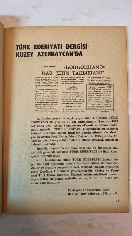 TÜRK EDEBİYATI AYLIK FİKİR VE SANAT DERGİSİ - KASIM 1980 SAYI: 85 AHMET KABAKLI - BAHATTİN KARAKOÇ - AYHAN SONGAR - AHMET ALİ ARSLAN - M. KÂMİL DÜRÜST - SEVİNÇ ÇOKUM - SAİT ÖNAÇAN - ÜNVER ORAL - CAHİT ÖNEY - TAHİR KUTSİ MAKAL - SERHAT KABAKLI - SEDAT ÜMRAN - RIZA HEKİM - ÖZŞAN KOBAN - ERKAL İLKER - İSA KOCAKAPLAN KELİLE VE DİMNE - BİR DÜŞÜN - NEFİS HAKKINDA - SAVALAN’DAN İKİ ŞİİR - TÜRK EDEBİYATI DERGİSİ KUZEY AZERBAYCAN’DA - YIKTIK PERDEYİ EYLEYİP VIRAN - TÜRKİYE DIŞINDA OSMANLI-TÜRK ESERLERİ - TAM TAKIM EKSİKSİZ 52 SAYFA, AHMET KABAKLI tarafından kaleme alınmıştır. Eser SEVİNÇ ÇOKUM editörlüğünde hazırlanmıştır. Kitap . tarafından yayınlanmıştır. 52 sayfadır. TÜRK EDEBİYATI AYLIK FİKİR VE SANAT DERGİSİ - KASIM 1980 SAYI: 85 AHMET KABAKLI - BAHATTİN KARAKOÇ - AYHAN SONGAR - AHMET ALİ ARSLAN - M. KÂMİL DÜRÜST - SEVİNÇ ÇOKUM - SAİT ÖNAÇAN - ÜNVER ORAL - CAHİT ÖNEY - TAHİR KUTSİ MAKAL - SERHAT KABAKLI - SEDAT ÜMRAN - RIZA HEKİM - ÖZŞAN KOBAN - ERKAL İLKER - İSA KOCAKAPLAN KELİLE VE DİMNE - BİR DÜŞÜN - NEFİS HAKKINDA - SAVALAN’DAN İKİ ŞİİR - TÜRK EDEBİYATI DERGİSİ KUZEY AZERBAYCAN’DA - YIKTIK PERDEYİ EYLEYİP VIRAN - TÜRKİYE DIŞINDA OSMANLI-TÜRK ESERLERİ - TAM TAKIM EKSİKSİZ 52 SAYFA adlı eser Türkçe dilindedir.