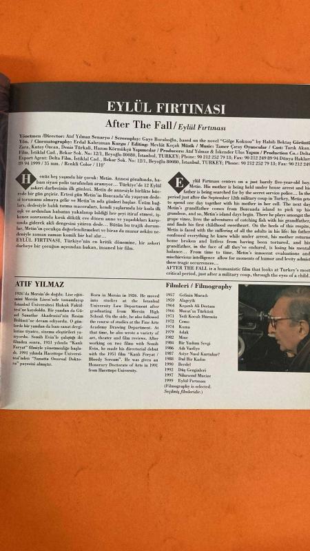 TÜRK FİLM DERGİSİ - 15 MAYIS 2000 İSTEMİHAN TALAY - KADRİ YURDATAP - MUSTAFA ALTIOKLAR - ÖMER FARUK SORAK - MUSTAFA PREŞEVA - ARZU YANARDAĞ - DEMET ŞENER - FUNDA BARIN - NURSELİ İDİZ - MUSTAFA UĞURLU - YALÇIN YELENCE - UMUR BUGAY - GÜNGÖR TOYDEMİR - ŞEVKET UYSAL - ARİF ERKİN - MELTEM CUMBUL - ZAFER ALGÖZ - GÜVEN KIRAÇ - RUTKAY AZİZ - MEHMET AKAN - MERAL ÇETİNKAYA - OKTAY SÖZBİR TÜRK FİLM - CANNES FİLM FESTİVALİ - ASANSÖR - DENİZE HANÇER DÜŞTÜ - İSTANBUL KANATLARIMIN ALTINDA - AĞIR ROMAN - DURUŞMA - BUGAY FİLM YAPIM - UMUT SANAT - ÖZEN FİLM T.A.Ş. - SESAM - SİNEMA ESERİ SAHİPLERİ MESLEK BİRLİĞİ - CERRAHPAŞA TIP FAKÜLTESİ - ANKARA KOLEJİ - ANKARA ÜNİVERSİTESİ BASIN VE YAYIN YÜKSEK OKULU - 126 SAYFA adlı eser Yunanca dilindedir.