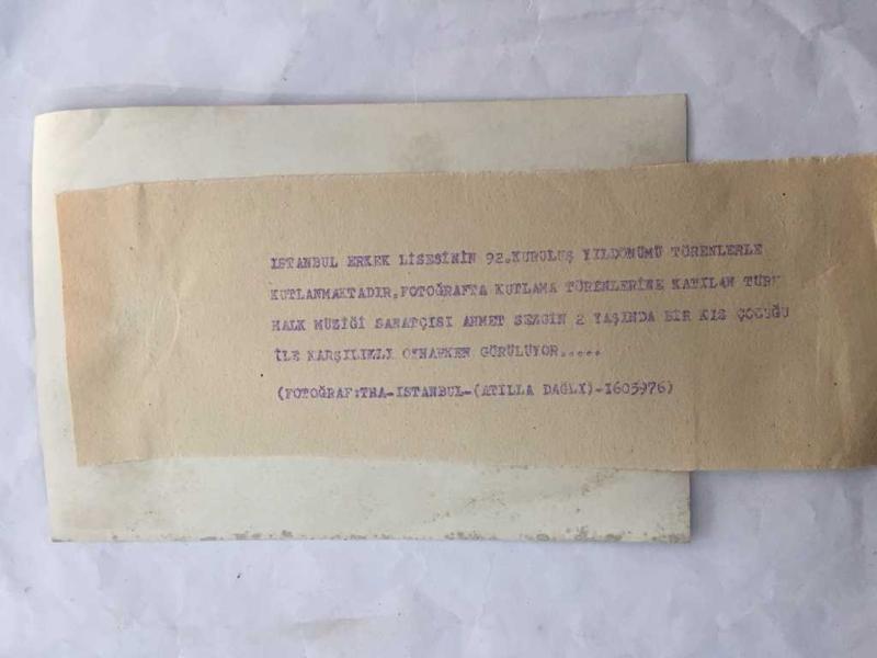 TÜRK HALK MÜZİĞİ SANATÇISI AHMET SEZGİN'İN ORİJİNAL FOTOĞRAFI - 18 x 12 cm EBADINDA - AHMET SEZGİN, İSTANBUL ERKEK LİSESİ'NİN 92. KURULUŞ YILDÖNÜMÜ KUTLAMALARINDA VERDİĞİ KONSERDE 2 YAŞINDAKİ BİR KIZ ÇOCUĞUYLA SAHNEDE OYNARKEN ÇEKİLMİŞ BİR FOTOĞRAF (ATİLLA DAĞLI, 16 MAYIS 1976) başlıklı ürün, Efemera, Müzik, Sinema > Fotoğraflar > Müzik kategorisi altında İkinci El olarak satılmaktadır.