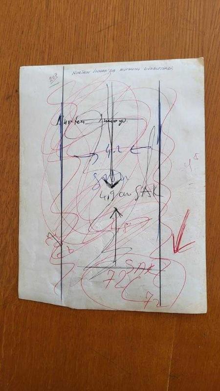ALT KENARDA 4-5 cm KADAR BİR YIRTILMA ŞEFFAF BANTLA ARKADAN ONARILMIŞTIR. ORTAYA DOĞRU HAFİF BİR KIRILMA OLUŞMUŞ, PEK BELLİ DEĞİL.