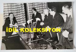 TÜRK HEKİM ve SİYASETÇİ, 1968-1973 İSTANBUL BELEDİYE BAŞKANI DOKTOR FAHRİ ATABEY'İN ORİJİNAL FOTOĞRAFI - 18 x 12 cm EBADINDA - DR. FAHRİ ATABEY, 500 KİŞİLİK BİR TALEBE YURDU YAPIMIYLA İLGİLİ ''İLİM YAYMA CEMİYETİ'' YÖNETİCİLERİYLE GÖRÜŞME YAPARKEN ÇEKİLMİŞ BİR KARE