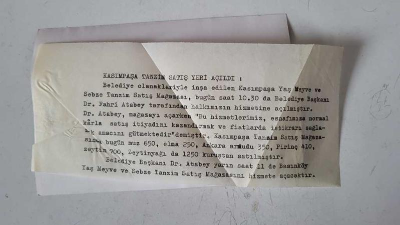 TÜRK HEKİM ve SİYASETÇİ, 1968-1973 İSTANBUL BELEDİYE BAŞKANI DOKTOR FAHRİ ATABEY'İN ORİJİNAL FOTOĞRAFI - 18 x 12 cm EBADINDA - DR. FAHRİ ATABEY, BELEDİYE OLANAKLARIYLA İNŞA EDİLEN KASIMPAŞA YAŞ MEYVE ve SEBZE TANZİM SATIŞ MAĞAZASINDA TEZGAHLARI KONTROL EDERKEN ÇEKİLMİŞ BİR KARE. KG FİYATLARI O GÜN İTİBARİYLE; MUZ 650 KURUŞ, ELMA 250 KURUŞ, ANKARA ARMUDU 350 KURUŞ, PİRİNÇ 410 KURUŞ, ZEYTİN 700 KURUŞ, ZEYTİNYAĞI DA 1250 KURUŞTUR., 9 gün önce satışa sunulmuştur.