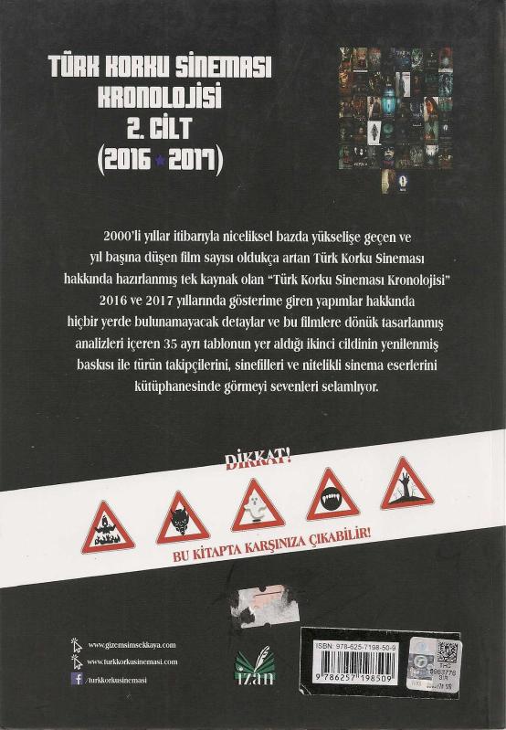 TÜRK KORKU SİNEMASI KRONOJİSİ 2. CİLT (2016-2017), GİZEM ŞİMŞEK KAYA tarafından kaleme alınmıştır. Eser DENİZ KAMİLOĞLU editörlüğünde hazırlanmıştır. Kitap 2020 yılında İZAN YAYINCILIK tarafından [ANKARA] 9786257198509 ISBN kodu ile yayınlanmıştır. 210 sayfadır. TÜRK KORKU SİNEMASI KRONOJİSİ 2. CİLT (2016-2017) adlı eser Türkçe dilindedir.