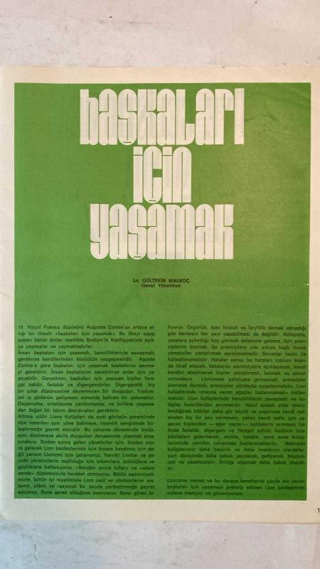 TÜRK LİON DERGİSİ - EKİM KASIM 1977 SAYI: 4 FAHRETTİN KERİM GÖKAY - GÜLTEKİN MALKOÇ - MÜNİP TARHAN - KEMAL KÖKSALAN - TURAN TAMAR - RİFAT İNSEL - MARAL ÖZTEKİN - KEMAL GÜÇKAN - TAYLAN KARATUNA - NECDET KİNAY - YILDIZ TUNÇAY - SAMİM AS - KEMAL KURDOĞLU - ORHAN ELEMOĞLU - REFET ERÇİL - ORHAN DURAN - HALÜK KÖMÜRCÜOĞLU - TUĞRUL KOLANKAYA - HALUK SEL - YILMAZ GÜMÜŞLÜGİL - ERKAN KESİM - HAYİM E. KOHEN - FAHRETTİN BELGİN - MELİH ABİDİNOĞLU - NİMETULLAH ESMER - TAMER KEMAHLIOĞLU - YILMAZ AYKAÇ - İBRAHİM SITKI HATİPOĞLU - MEHMET TURAÇ - ŞAKİR ALAV - NECAT ACAR HER TERAKKİNİN VE KURTULUŞUN ANASI HÜRRİYETTİR (ATATÜRK) - ARTAN MALİYET, KISITLI BÜTÇE - TÜRK LION DERGİSİNİN YAYIN HAYATINI SÜRDÜRME ÇABASI - HALUK SEL’İN ÇAĞRISI: DERGİYİ YAŞATMAK İÇİN KULÜPLERİN KATKISI - BAŞKALARI İÇİN YAŞAMAK (AUGUSTE COMTE FELSEFESİ) - LIONİZMDE FEDAKÂRLIK VE DİGERGAMLIK - KULÜPLERİN BENCİLLİKTEN ARINMASI VE BİRLİĞE ULAŞMAK - GÜLTEKİN MALKOÇ’UN MESAJI: YARININ LIONİZMİ İÇİN ÇALIŞMAK - TAM TAKIM EKSİKSİZ 32 SAYFA adlı eser, Kitap > Süreli Yayınlar > Dergiler > Siyaset kategorisinde İkinci El olarak satıştadır.
