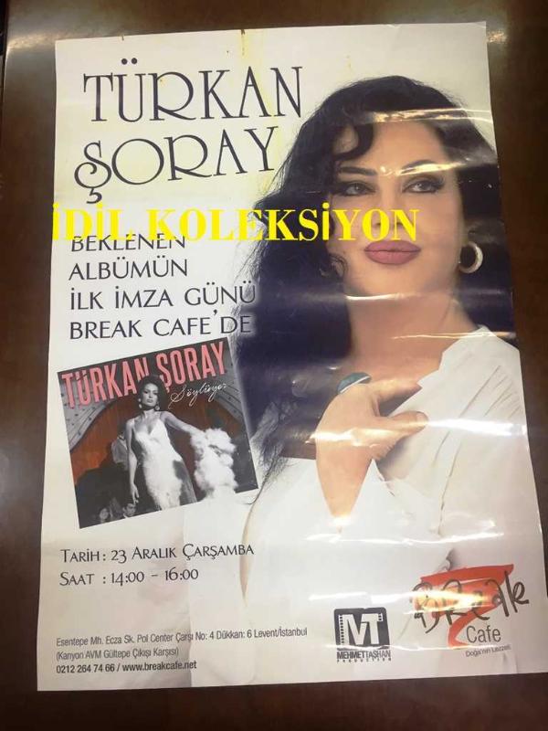 TÜRKAN ŞORAY AFİŞİ / POSTERİ - BÜYÜK BOY - ORİJİNAL - 70 X 50 cm EBADINDA - Original Turkish Big Size Poster - BEKLENEN ALBÜMÜN İLK İMZA GÜNÜ BREAK CAFE'DE, MEHMET TAŞHAN, en son 2 ay önce güncellenmiştir.