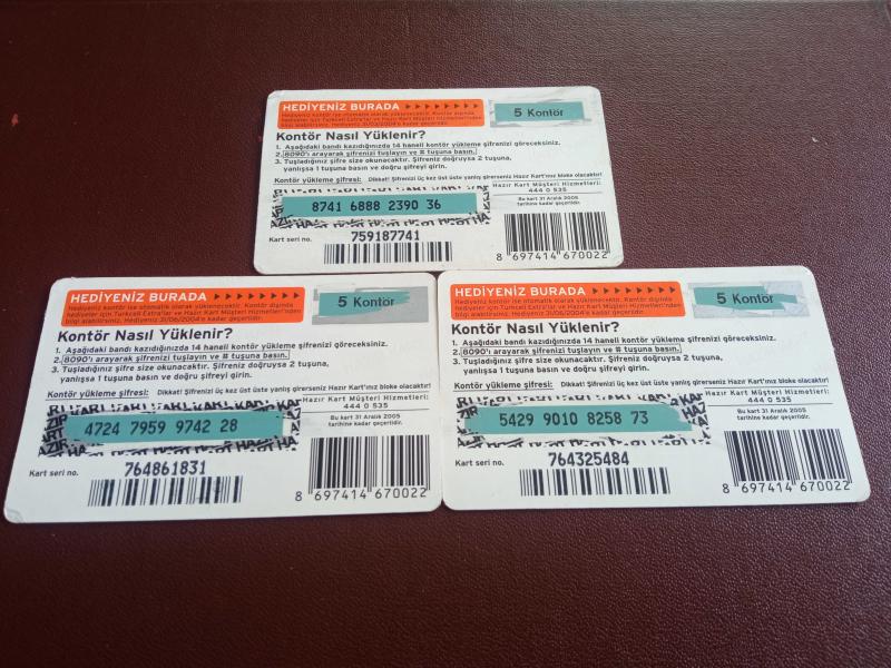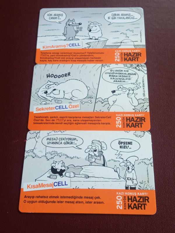 Çok iyi kondisyonda koleksiyonluk mükemmel görselli üç adet Turkcell hazır kart.
