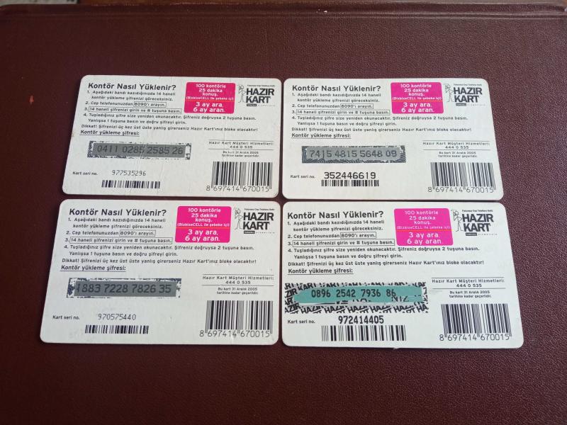 Çok iyi kondisyonda koleksiyonluk mükemmel görselli 4 âdet Turkcell hazır kart.