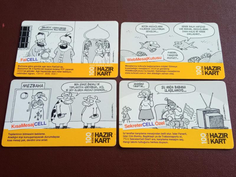 Çok iyi kondisyonda koleksiyonluk mükemmel görselli 4 âdet Turkcell hazır kart.