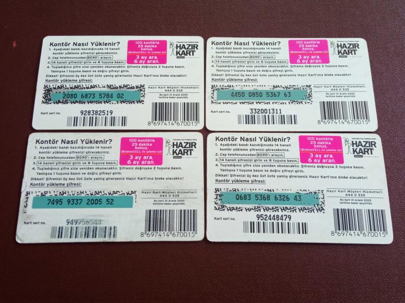 TÜRKCELL GSM; HAZIR KART (4 ADET) başlıklı ürün, Efemera, Müzik, Sinema > Jetonlar ve Telefon Kartları > Telefon Kartları > Yerli Kartlar kategorisi altında İkinci El olarak satılmaktadır.