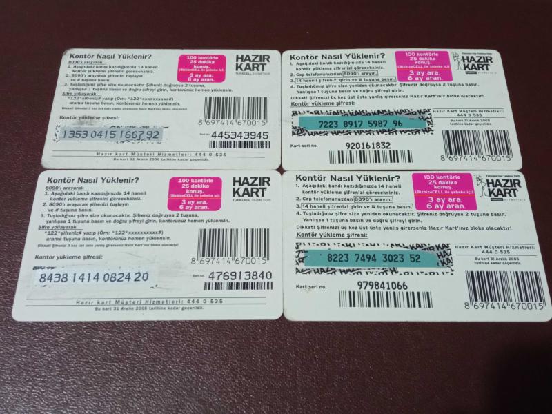 LOT.1 » TURKCELL GSM KONTÜR KARTI 4 ADET