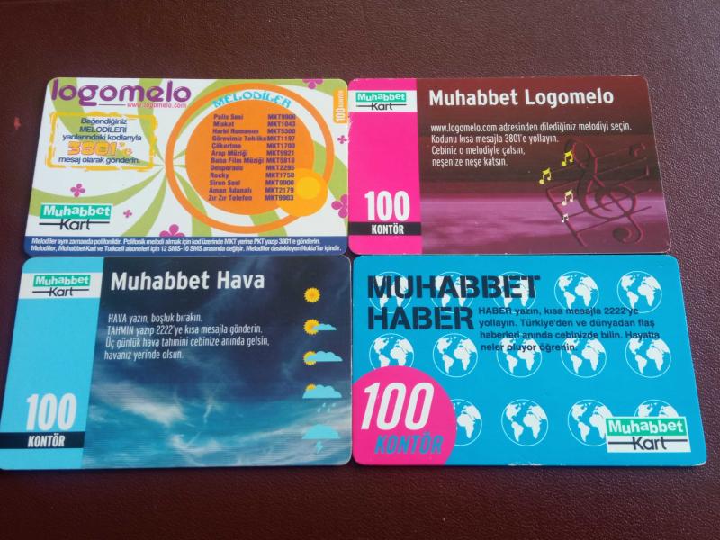 TÜRKCELL GSM; KONTÜR YÜKLEME KARTI 4 ADET başlıklı ürün, Efemera, Müzik, Sinema > Jetonlar ve Telefon Kartları > Telefon Kartları > Yerli Kartlar kategorisi altında İkinci El olarak satılmaktadır.