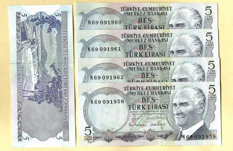 TURKEY 5 Lira ----- PREFIX K69 -----1976 UNC ÇİL, 17 gün önce satışa sunulmuştur.
