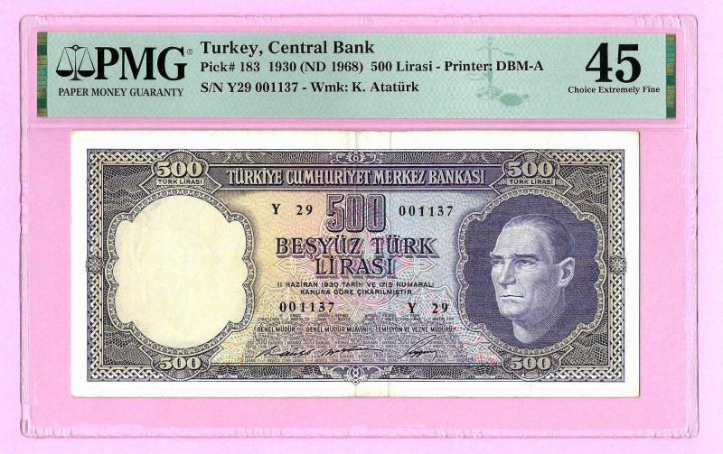 TURKEY 500 Lira 1968 p183,PMG 45 CHOICE XF (TK 19 631) ÇÇT, en son 2 gün önce güncellenmiştir.