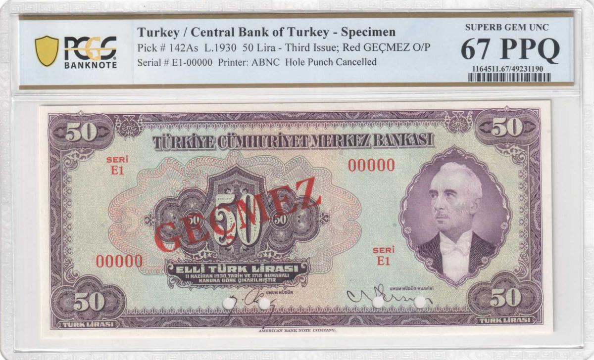 TÜRKİYE 1930 50 LİRA (3.Emisyon 1.Tertip) SPECIMEN 00000 PCGS 67 PPQ – POP 1 ELITE NADİR+ULTRA NADİR ÇİL, en son 7 saat önce güncellenmiştir.