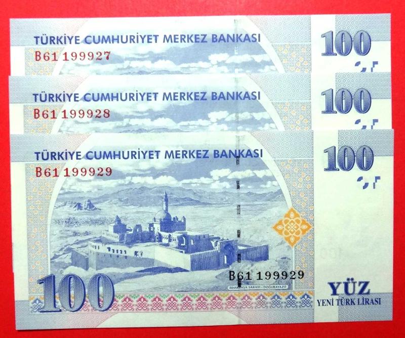 TÜRKİYE=2005 100 YTL P-221 8.Emisyon 1.Tertip ÇİL' 3 Adet!, 8 ay önce satışa sunulmuştur.