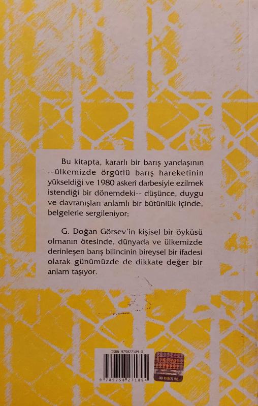 TÜRKİYE BARIŞ KOMİTESİ DERNEĞİ SERÜVENİ ÜZERİNE Yaşanmışlıklar-Belgeler (1976-1986), G. DOĞAN GÖRSEV tarafından kaleme alınmıştır. Kitap 2006 yılında DÜNYA YAYINCILIK tarafından [İSTANBUL] yayınlanmıştır. Satışta olan kitap, yayınevinin 1. baskısıdır. 234 sayfadır. TÜRKİYE BARIŞ KOMİTESİ DERNEĞİ SERÜVENİ ÜZERİNE Yaşanmışlıklar-Belgeler (1976-1986) adlı eser Türkçe dilindedir.