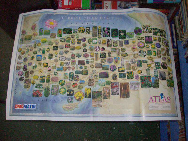 TÜRKİYE ÇİÇEK HARİTASI (ÇİFT ÇENEKLİLER) ATLAS EKİDİR EBATLARI - 59 X 87 CM ÇOK İYİ DURUMDA KARGO DAHİL