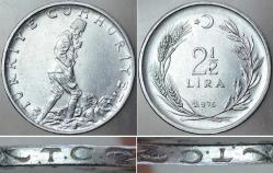 TÜRKİYE CUMHURİYETİ 2,5 LİRA 1976 HATALI BASIM - KENAR YAZISI HEM TERS HEM DÜZ ERÖRLÜ.