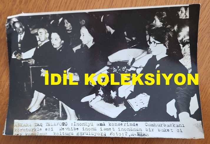 TÜRKİYE CUMHURİYETİ 2. CUMHURBAŞKANI İSMET İNÖNÜ'NÜN AİLESİNİN ORİJİNAL AJANS-BASIN FOTOĞRAFI - 18 x 12 cm EBADINDA - MEVHİBE İNÖNÜ, İSMET İNÖNÜ'YÜ ANMA KONSERİNDE CUMHURBAŞKANI FAHRİ KORUTÜRK'LE AYNI KAREDE, en son 3 ay önce güncellenmiştir.